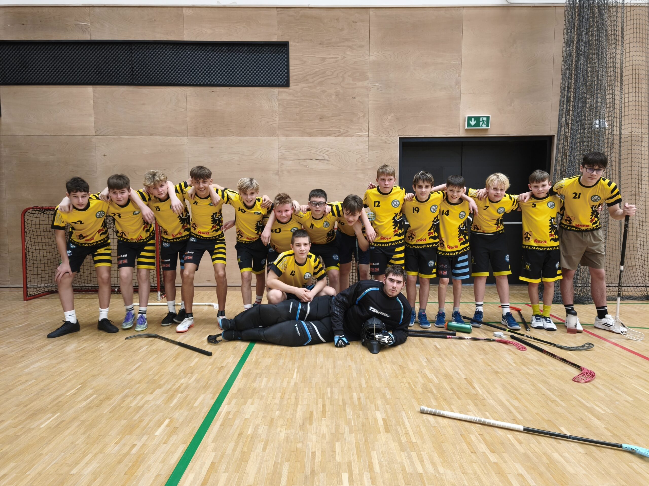 SEBOU: žluté triko, mikinu, halovky, florbalku nebo výzbroj, jídlo, pití, 450 Kč na náramek